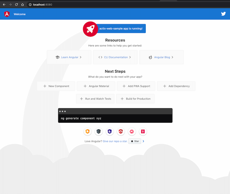 $ npx @angular/cli new actix-web-sample